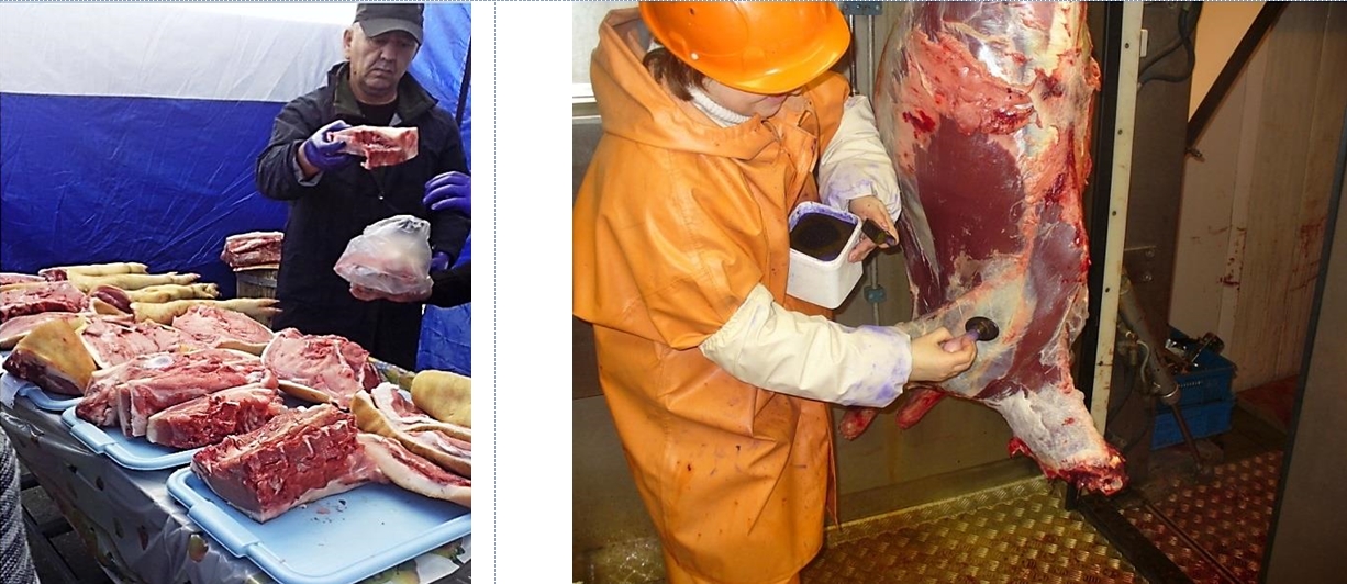 4. Для ветеринарно-санитарной экспертизы на рынке, ярмарке предъявляются целые туши или туши, разрубленные пополам или на четвертины. Мясо, разрубленное на куски, к осмотру и продаже не допускается.