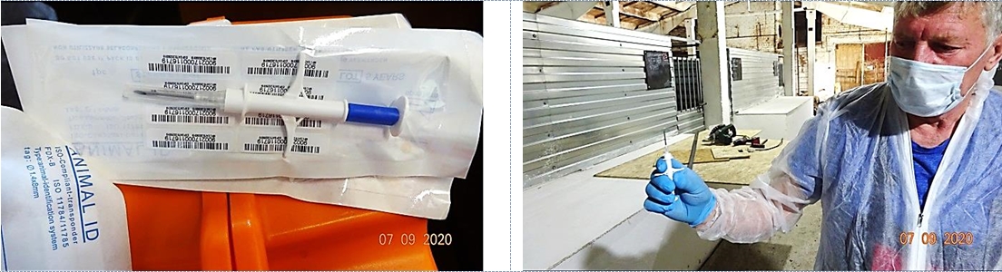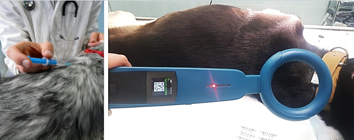 - на втором производится имплантация чипа различными способами: животным – компаньонам чип вводится подкожно и далее находится в подкожной клетчатке, продуктивным (северным оленям) чип задаётся в виде керамического болюса внутрь для проглатывания, после чего фиксируется в преджелудке животного.