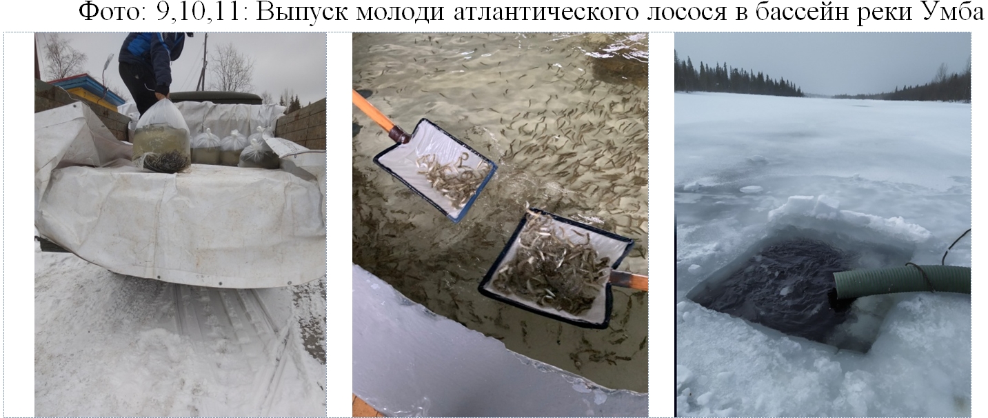 За отчетный период проведены обследования рыбоводных хозяйств, размещенных на акватории Нижнетуломского водохранилища, оз. Имандра, р. Ура, губы Палкина Белого моря, губ Печенга, Малая Волоковая, Ура, Титовка, Долгая, Зеленая, Зеленецкая Западная, Долгая Западная, в районе о. Кильдин и Большой Березов Баренцева моря, рыбоводных заводов Мурманского филиала ФГБУ «Главрыбвод», а также рыбоводного завода по производству малька форели, расположенного в тоннеле Верхнетуломской ГЭС (район поселка Верхнетуломский). А также проведены работы на реках Кола, Тулома и Умба в рамках мониторинга заболеваний в диких популяциях анадромного лосося.